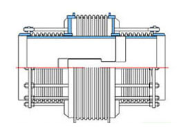 管壓力平衡式波紋膨脹節(jié)性能特點(diǎn): 由兩組工作波和一個(gè)面積是工作波2倍的平衡波以及2組傳力拉桿構(gòu)成,膨脹節(jié)通過受力構(gòu)件(大拉桿或者舌管)來承受內(nèi)壓推力該補(bǔ)償器主要用于補(bǔ)償管系的軸向位移,若再增加一組工作波可以吸收少量的橫向位移,不能吸收角向位移,該補(bǔ)償器一般用于壓力較高的直管道,其壓力推力由波紋管自身結(jié)構(gòu)件承受,管線固定支架僅考慮波紋管的彈性力及管道摩擦阻力。